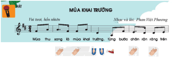 - Sử dụng nhạc cụ gõ và vận động cơ thể để đệm cho bài hát Mùa khai trường theo mẫu sau đây: