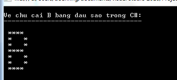 Console.Write("Ve chu cai B bang dau sao trong C#:\n");