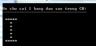 Console.Write("Ve chu cai I bang dau sao trong C#:\n");