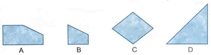 Bài 3. Khoanh vào chữ đặt dưới viên gạch có dạng hình tứ giác: