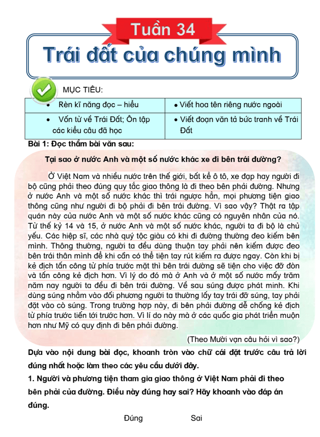 Bài tập cuối tuần Tiếng Việt lớp 3 Tuần 34 Kết nối tri thức (có đáp án)