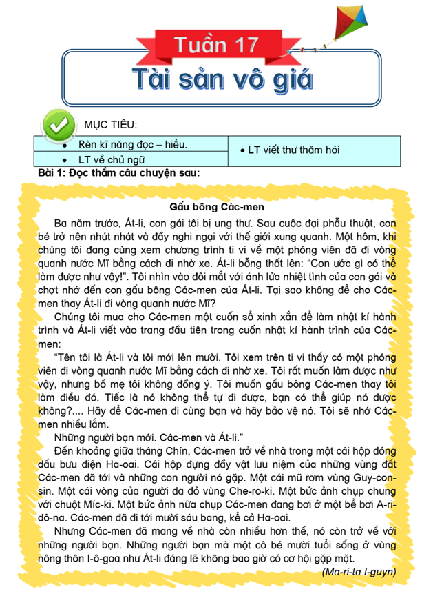 Bài tập cuối tuần Tiếng Việt lớp 4 Tuần 17 Cánh diều (có đáp án)