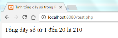 echo "Tổng dãy số từ 1 đến 20 là $sum"."<br>";