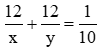 Do 2 máy cùng cày trong 12 giờ được 1/10 khu đất nên ta có phương trình: