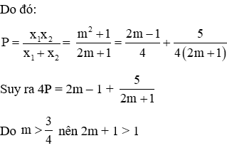 x1 + x2 = 2m + 1 và x1.x2 = m2 + 1.