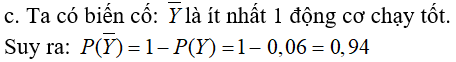 Câu 21: Một chiếc máy có hai động cơ I và II hoạt động độc lập với nhau.Xác suất để động cơ I và động cơ II chạy tốt lần lượt là 0,8 và 0,7. Hãy tính xác suất để