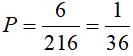Do đó, |Ω6| = 6 . Vậy P(A) = 6/36 = 1/6 .