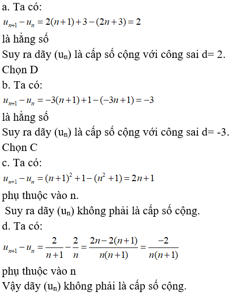 Trắc nghiệm Cấp số cộng (có đáp án)