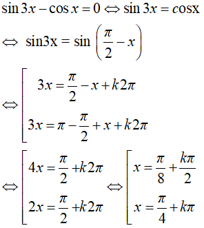 Câu 18: Nghiệm của phương trình sin3x – cosx = 0 là: