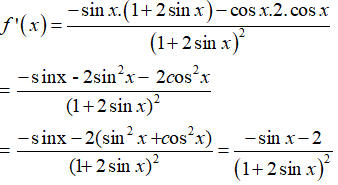 Bài 9: Hàm số có đạo hàm là: