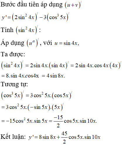 Bài 10: Tính đạo hàm của hàm số sau: y = 2sin24x - 3cos35x.