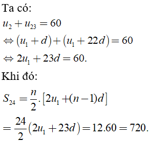Bài 3: Cho cấp số cộng (un) thỏa mãn u2 + u23 = 60. Tính tổng S24 của 24 số hạng đầu tiên của cấp số cộng đã cho.