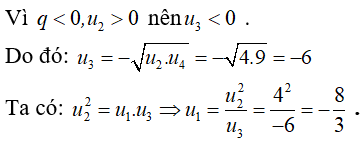 Bài 6: Cho cấp số nhân (un) với công bội q < 0 và u2 = 4, u4 = 9. Tìm u1 .