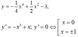 Lập bảng biến thiên, ta thấy hàm số có điểm cực tiểu là x = 0, có hai điểm cực đại là x = 1 và x = -1.