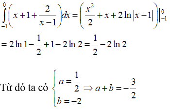 được viết dưới dạng a+bln2. Tính giá trị của a+b.