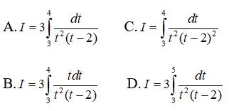 Đổi cận: x = 0 thì t = 3 ; x = 3ln2 thì t = 4