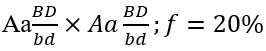 f = 20% → ( 0,4Ab : 0,4aB : 0,1AB : 0,1ab) ( 0,5Ab:0,5aB)