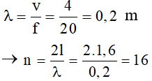 Câu 14: Trên một sợi dây đàn hồi dài 1,6 m hai đầu cố định, đang có sóng dừng. Biết tần số của sóng là 20 Hz, tốc độ truyền sóng trên dây là 4 m/s. Số bụng sóng trên dây là: