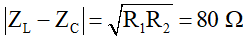 - Với R1 và R2 mạch tiêu thụ cùng công suất, suy ra :