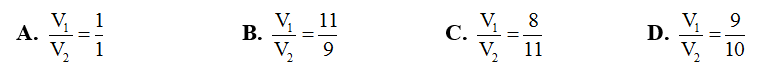 Câu 5: Trộn V1 lit dung dịch H2SO4 có pH = 3 với V2 lit dung dịch NaOH có pH = 12 để được dung dịch có pH = 11, thì tỷ lệ V1: V2 có giá trị nào?