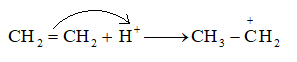 - Quá trình proton hoá liên kết đôi C = C của ethylene tạo thành carbocation: