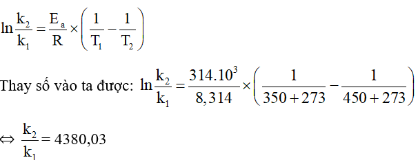 Vậy khi tăng nhiệt độ từ 350oC lên 450oC thì tốc độ phản ứng tăng 4380,03 lần.