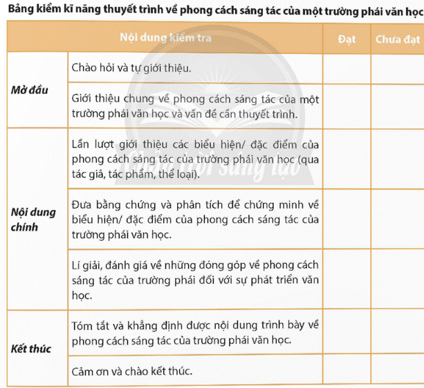 Soạn bài Yêu cầu và cách thức thuyết trình về phong cách sáng tác của một trường phái văn học (cổ điển, lãng mạn hoặc hiện thực) - Chân trời sáng tạo