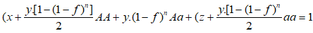 - Một quần thể nội phối (xảy ra giao phối cận huyết), ở thế hệ xuất phát có cấu trúc di truyền xAA + yAa + zaa = 1, với hệ số nội phối là f thì ở thế hệ Fn, cấu trúc di truyền là: