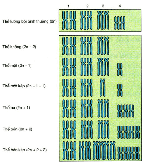 - Ở sinh vật lưỡng bội, đột biến lệch bội thường có các dạng sau: