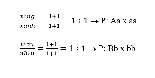 Vì vậy cơ thể P có kiểu hình vàng, nhăn có kiểu gen là: Aabb, cơ thể có kiểu hình xanh, trơn có kiểu gen là: aaBb.