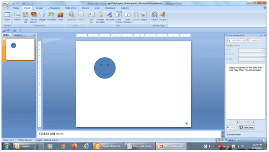 Tạo một slide với một số đối tượng, gắn hiệu ứng chuyển động và thay đổi