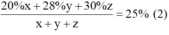 Lượng protein trong mỗi loại bánh A, B, C lần lượt là: 20%x, 28%y, 30%z.