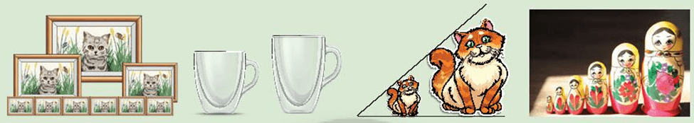 Khởi động trang 30 Chuyên đề Toán 11: Trong sách báo, tranh ảnh hay trong thực tế có những hình ảnh với hình dạng hoàn toàn giống nhau, chỉ khác nhau về kích thước. Những hình như vậy có liên quan gì về mặt hình học và phép biến hình nào đã tạo ra hình này từ hình kia?