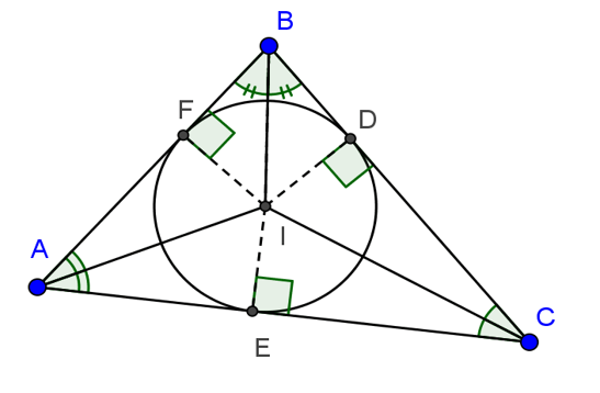 Tâm đường tròn nội tiếp tam giác là giao ba đường phân giác của tam giác đó.