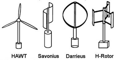 - Một số mô hình cánh quạt tuabin gió: tuabin gió trục ngang và trục đứng.
