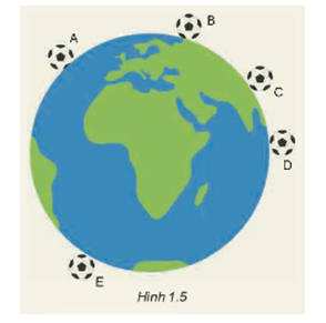 - Điểm đặt của lực hấp dẫn do quả bóng tác dụng lên Trái Đất đặt tại tâm Trái Đất và có chiều hướng về phía tâm quả bóng.
