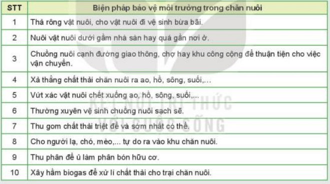 * Biện pháp nên làm để bảo vệ môi trường trong chăn nuôi là: