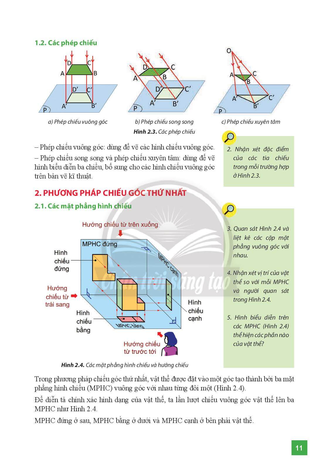 - Hình 2.3a: phép chiếu vuông góc