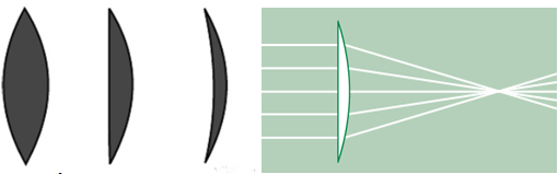 + Thấu kính lồi (rìa mỏng) là thấu kính hội tụ (tạo ra chùm tia ló hội tụ khi chùm tia tới là chùm song song).