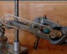 Đốt nóng miệng ống nghiệm chứa khí nhưng miếng sáp ở đáy vẫn chưa tan do không khí dẫn nhiệt kém. |