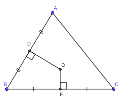 Điểm O cách đều hai điểm B, C nên suy ra điểm O nằm trên đường trung trực của đoạn thẳng BC.