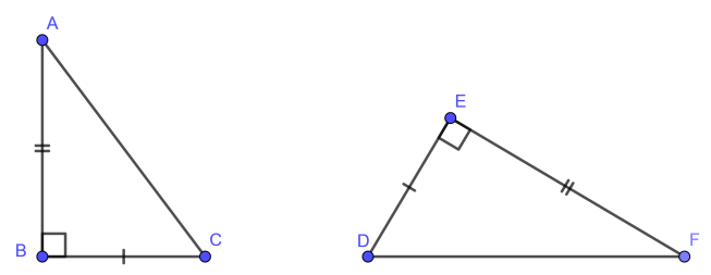Nếu hai cạnh góc vuông của tam giác vuông này bằng hai cạnh góc vuông của tam giác vuông kia thì hai tam giác vuông đó bằng nhau.