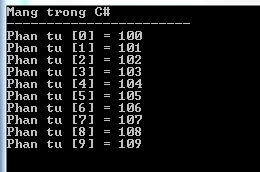 Ví dụ sau minh họa khái niệm về khai báo, gán và truy cập mảng trong C# đã đề cập ở trên: