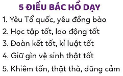 Câu 2 (trang 60 SGK Đạo đức lớp 4): Em hãy đọc 5 điều Bác Hồ dạy thiếu niên, nhi đồng và trả lời câu hỏi.