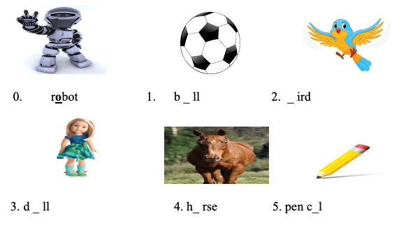I. Em hãy viết tên tiếng Anh của các đồ vật/con vật bên cạnh tranh của chúng