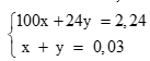 Giải hệ: x = 0,02; y = 0,01 (0,5 điểm)