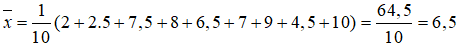 Dãy số liệu trên gồm 11 số. Do đó, số trung vị là: Me = x6 = 6,5