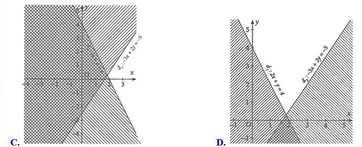 Câu 12: Miền nghiệm của hệ bất phương trình là phần không tô đậm của hình vẽ nào trong các hình vẽ sau?
