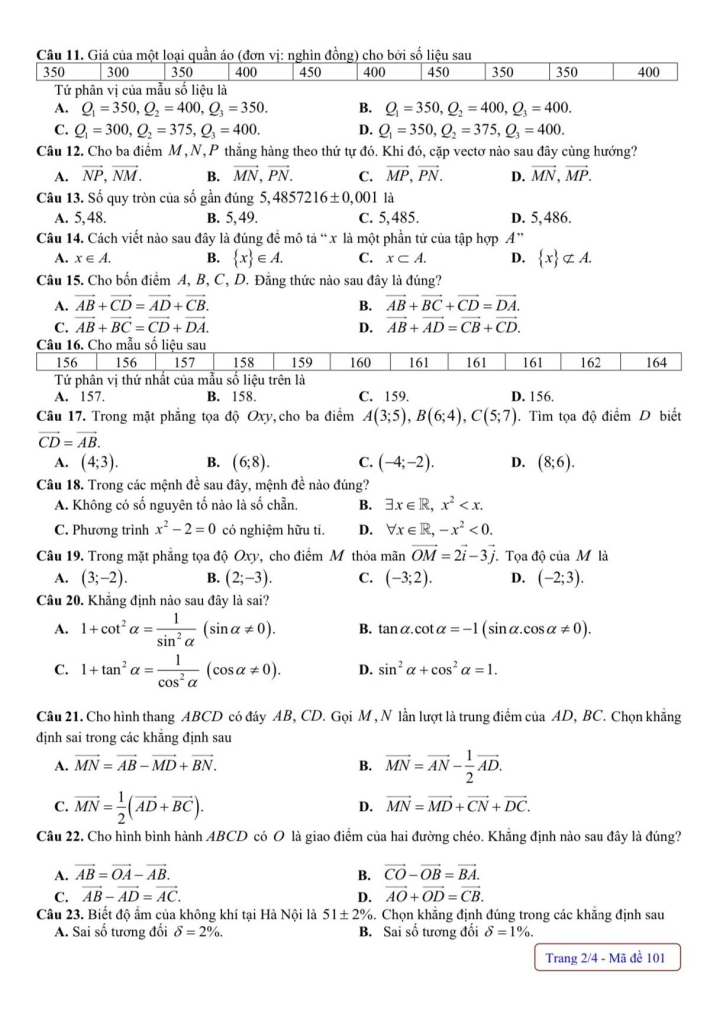 - Đề thi Toán 10 cấu trúc mới (có đáp án)
