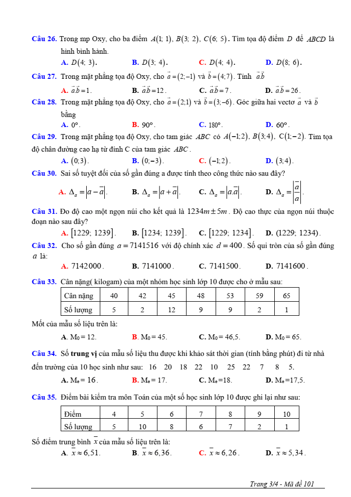 - Đề thi Toán 10 cấu trúc mới (có đáp án)
